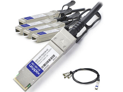 MSA Compliant 40GBase-CU QSFP+ to 4xSFP+ direct attach cable (Passive Copper 5m). A MSA Compliant 40GBase-CU QSFP+ to 4xSFP+ twinax direct attached cable that operates over passive copper with a maximum reach of 5.00m (16.40ft). This twinax cable has been programmed uniquely serialized and data-traffic and application tested to ensure it is 100% compliant and functional. Our direct attached cable is built to comply with MSA (Multi-Source Agreement) standards. The actual part shipped may have a different part number but will be functionally identical and 100% compatible. Trade Agreements Act (TAA) versions of this part are available.
