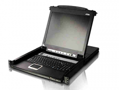 The CL5716 Slideaway LCD KVM Switch is a control unit that allows access to multiple computers from a single PS/2 or USB KVM (keyboard video and mouse) console. A single CL5716 can control up to 16 computers. As many as 31 additional KVM switches can be daisy-chained to the CL5716 so that up to 512 computers can all be controlled from a single KVM console.